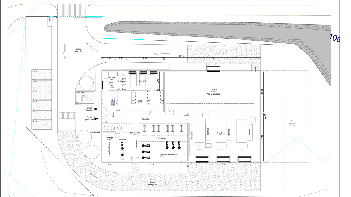Le projet consiste dans l’intégration urbaine d’une chaufferie de production de chaleur destinée a la ville de Gonesse. Très compact et organisé autour du process de production, le projet utilise un bardage translucide offrant un traitement lumineux spécifique créant un signal en entrée de ville.